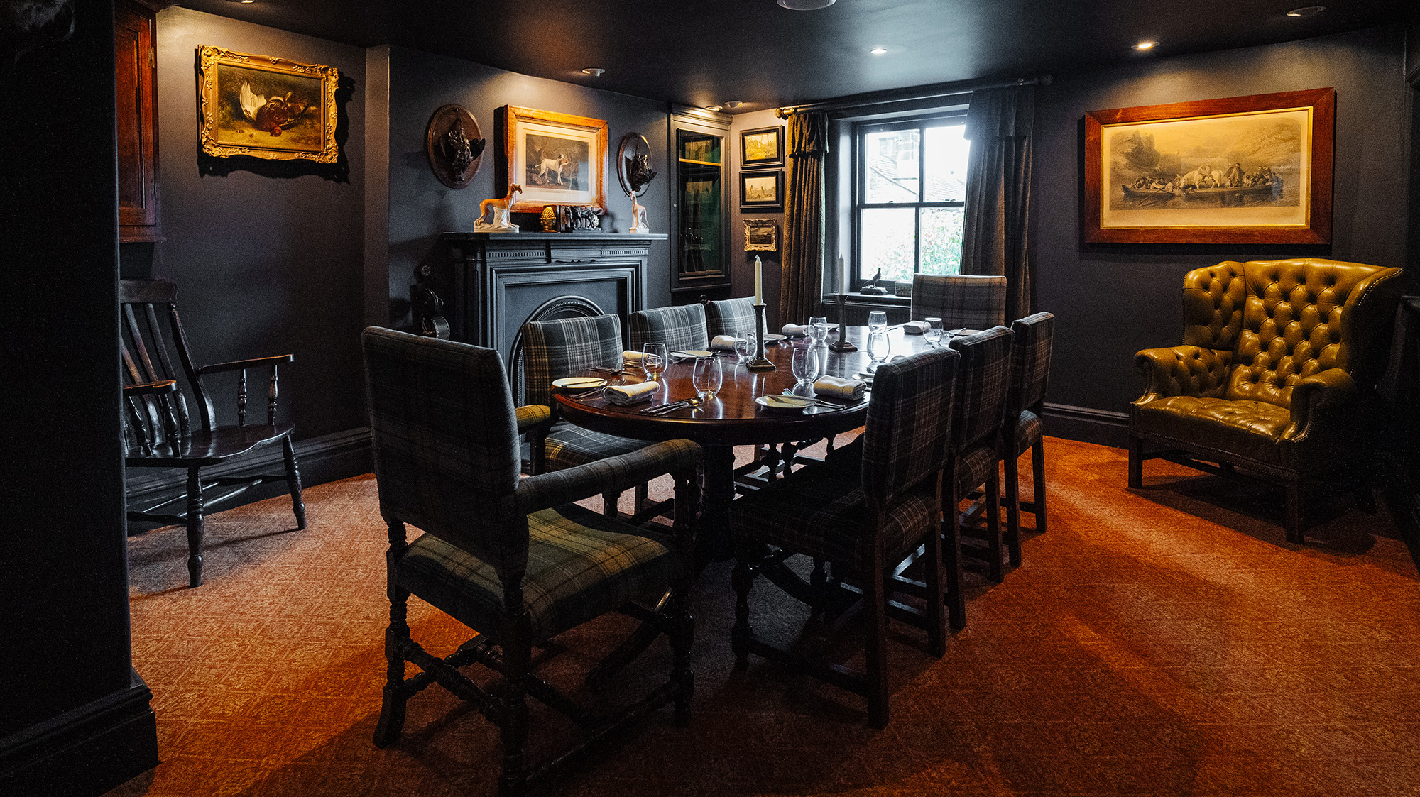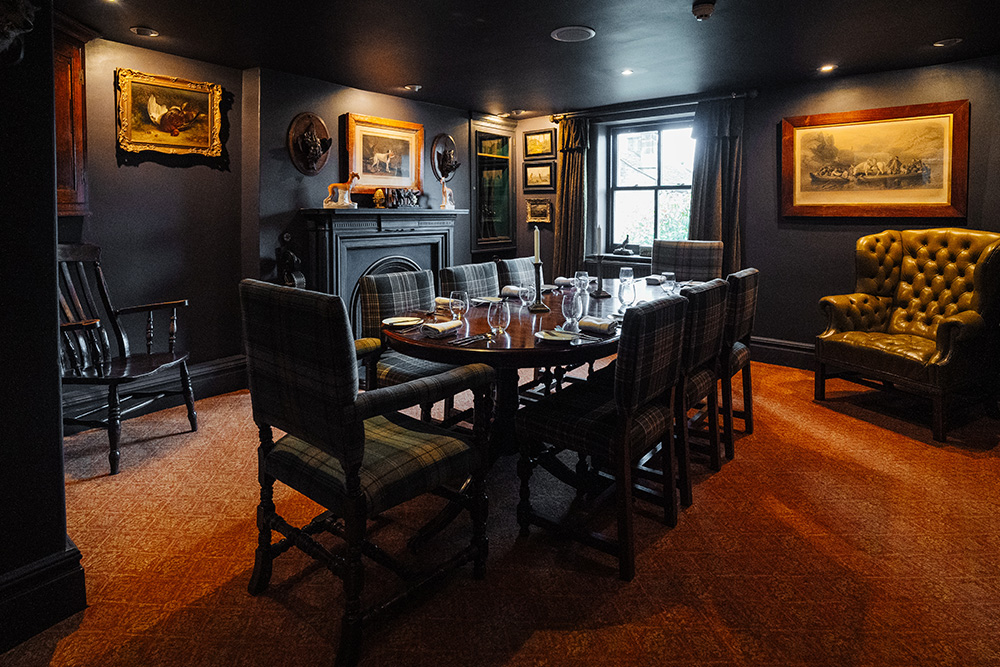 Step into The Gun Room, our cosy private dining space, a haven of serenity designed for intimate gatherings. With a charming coal fire and snug armchairs, this room exudes warmth and comfort. Perfectly suited for groups of 4 to 10, it offers an inviting atmosphere where you can relax and enjoy a delightful meal in the company of friends or family.